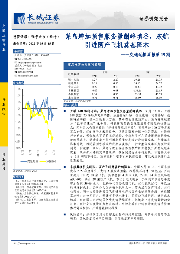 【长城证券】【20220515】菜鸟增加预售服务量削峰填谷,东航引进国产飞机奠基降本-26页