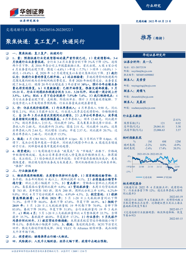 【华创证券】【20220523】交通运输行业周报:聚焦快递:复工复产,快递同行-24页
