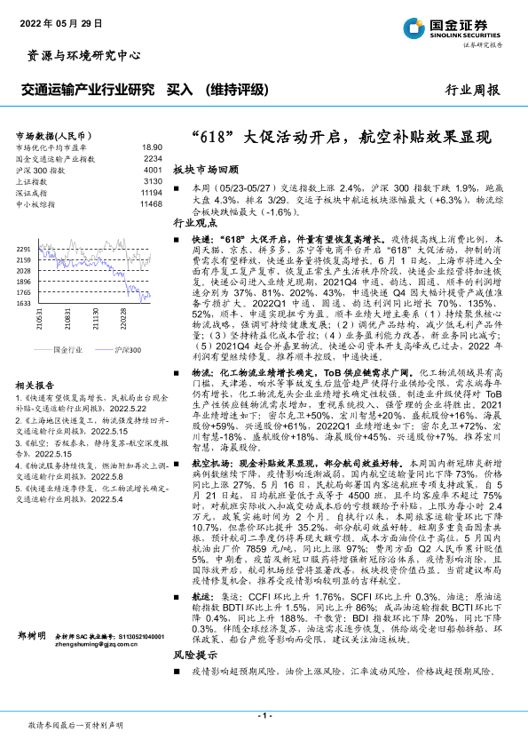 【国金证券】【20220529】交通运输行业周报:“618”大促活动开启,航空补贴效果显现-15页