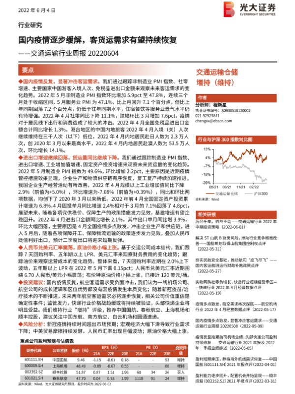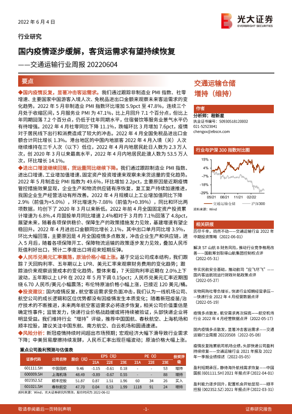 【光大证券】【20220604】国内疫情逐步缓解,客货运需求有望持续恢复-9页