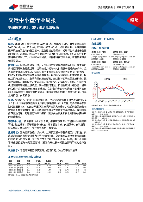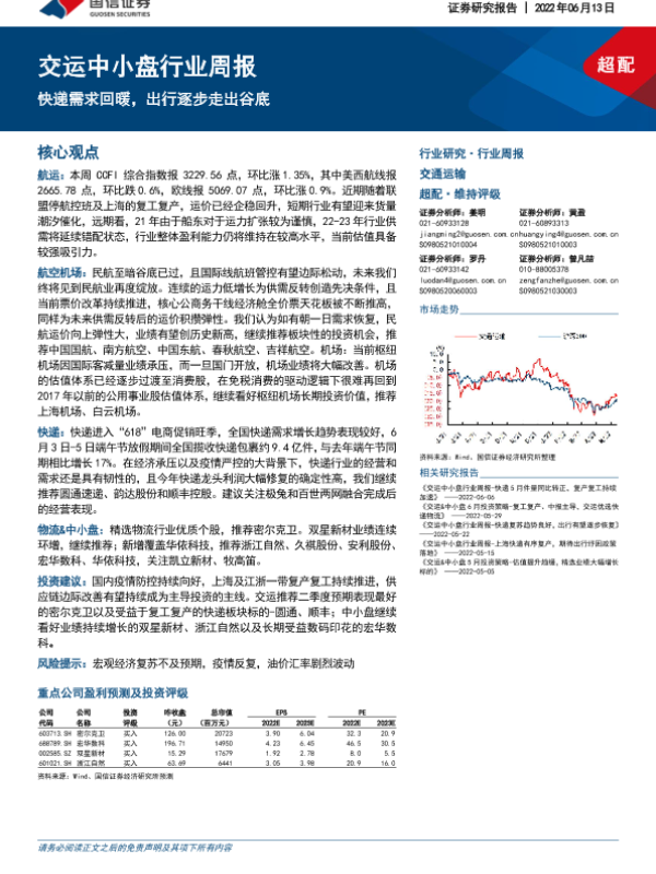 【国信证券】【20220613】交运中小盘行业周报:快递需求回暖,出行逐步走出谷底-22页
