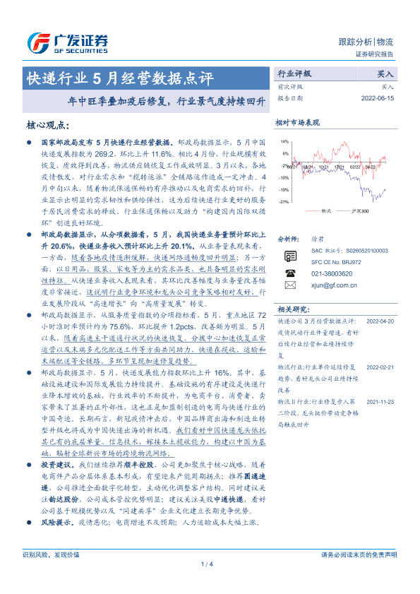 【广发证券】【20220615】快递行业5月经营数据点评-4页