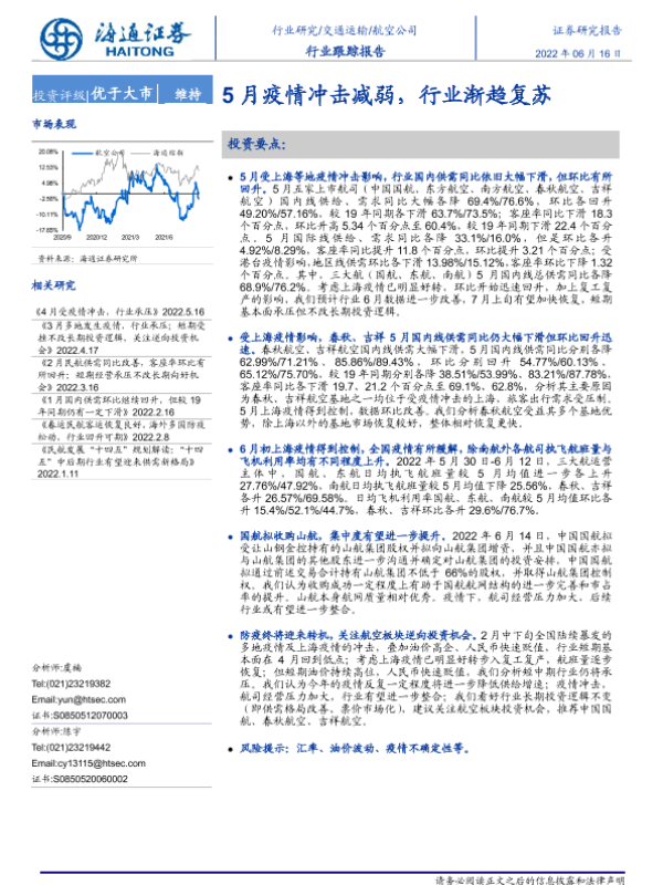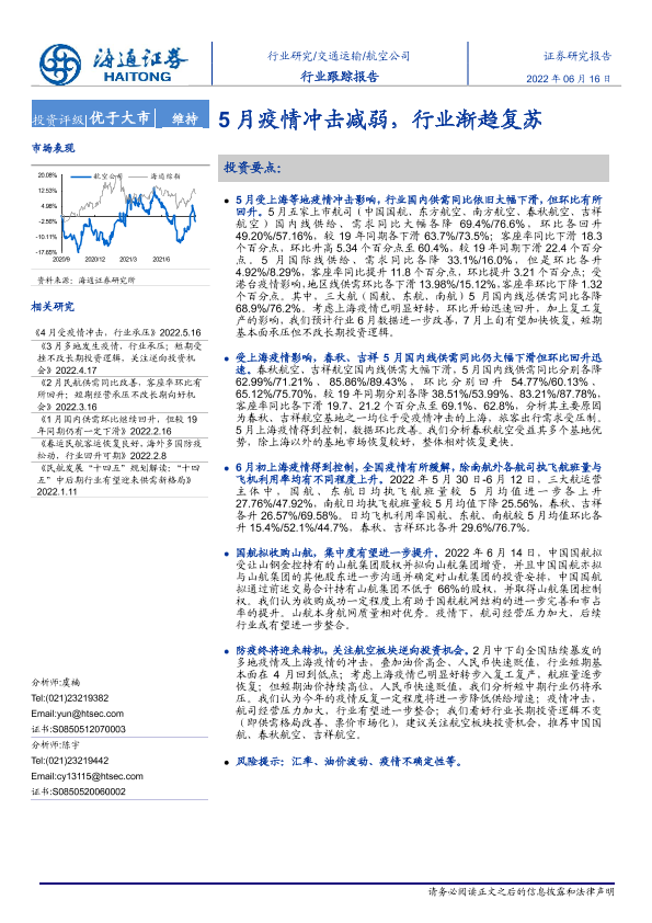【海通证券】【20220616】5月疫情冲击减弱,行业渐趋复苏-4页