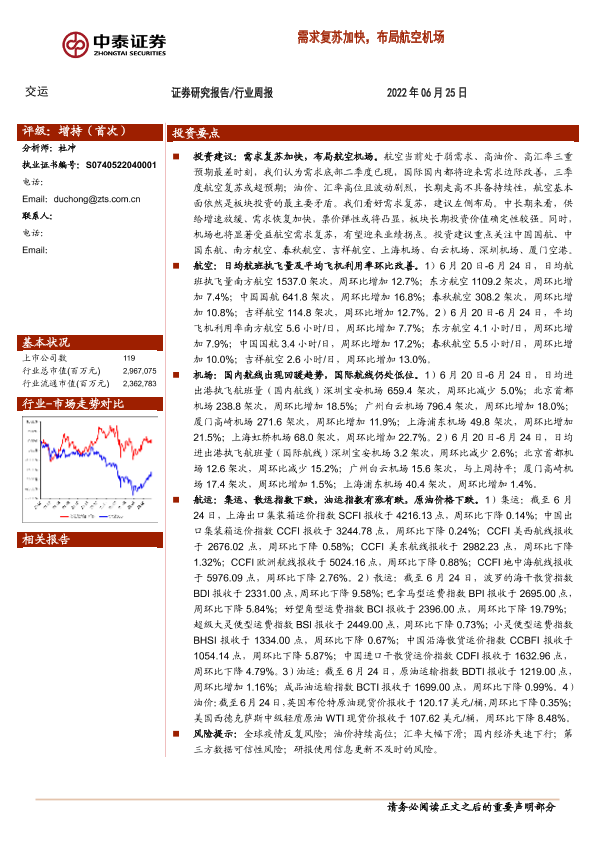 【中泰证券】【20220625】交运行业周报:需求复苏加快,布局航空机场-32页