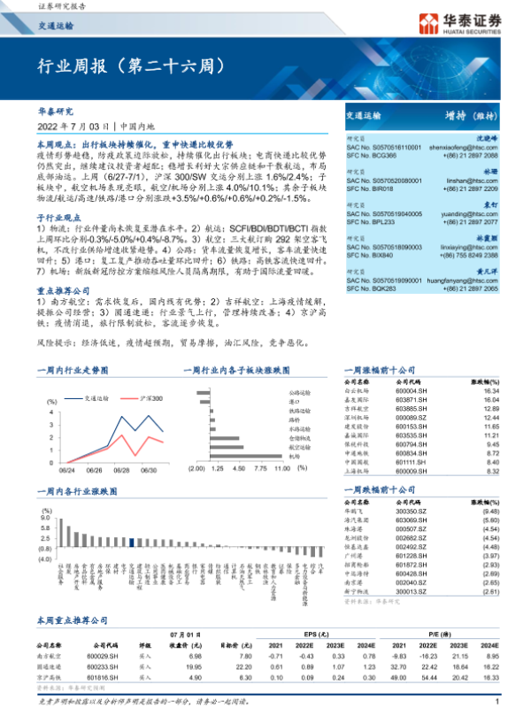 【华泰证券】【20220703】交通运输行业周报(第二十六周)-20页