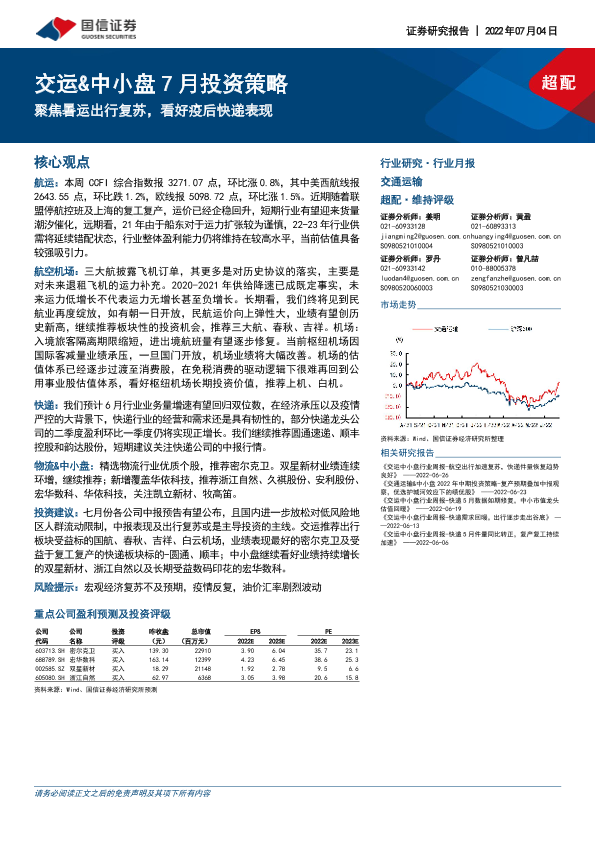 【国信证券】【20220704】7月投资策略:聚焦暑运出行复苏,看好疫后快递表现-24页