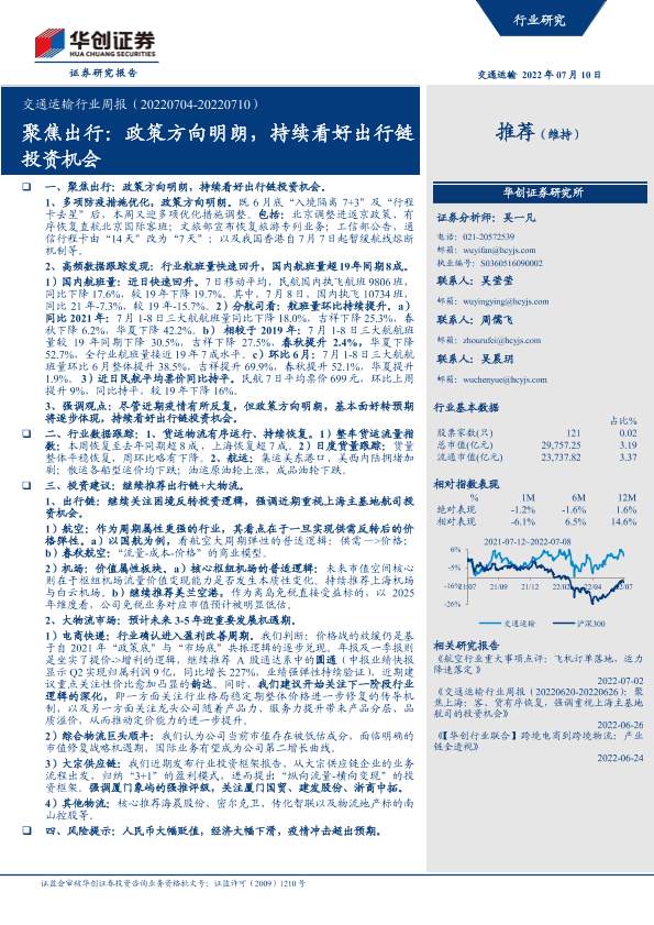 【华创证券】【20220710】交通运输行业周报:聚焦出行:政策方向明朗,持续看好出行链投资机会-23页