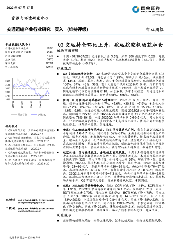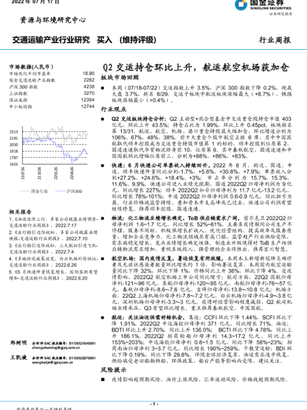 【国金证券】【20220717】Q2交运持仓环比上升,航运航空机场获加仓-17页