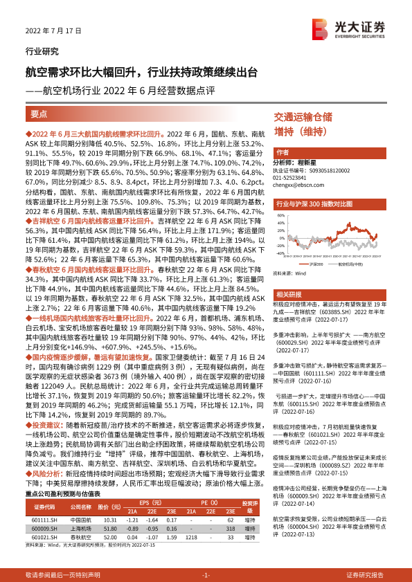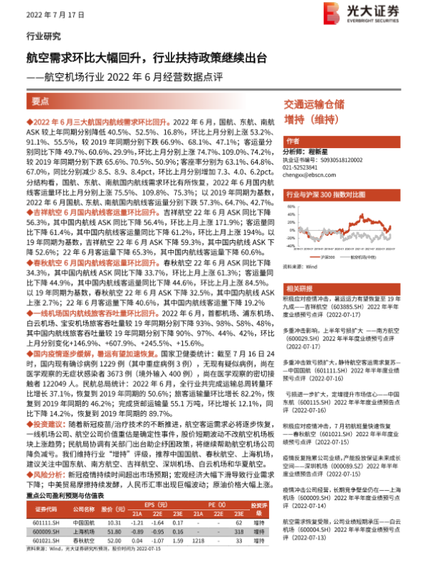 【光大证券】【20220717】航空机场行业2022年6月经营数据点评-8页