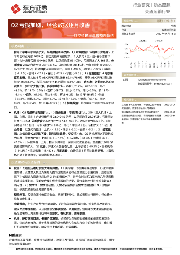 【东方证券】【20220718】航空机场半年报预告总结:Q2亏损加剧,经营数据逐月改善-15页