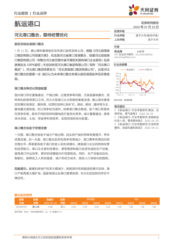 【天风证券】【20220723】河北港口整合,期待经营优化-2页
