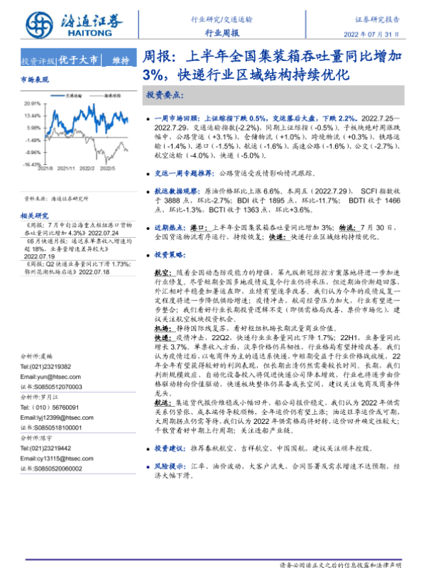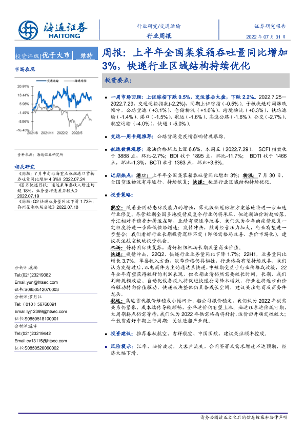 【海通证券】【20220731】上半年全国集装箱吞吐量同比增加3%,快递行业区域结构持续优化-11页