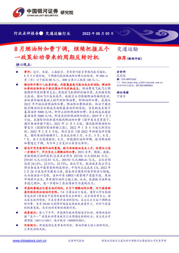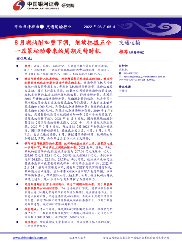 【银河证券】【20220805】8月燃油附加费下调,继续把握五个一政策松动带来的周期反转时机-2页
