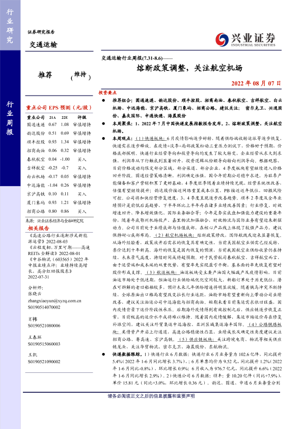 【兴业证券】【20220807】交通运输行业周报——熔断政策调整,关注航空机场-28页