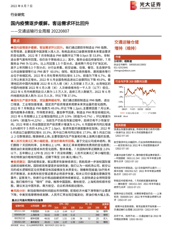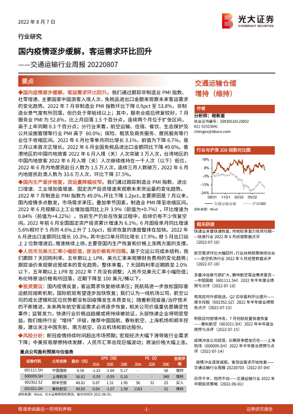 【光大证券】【20220807】国内疫情逐步缓解,客运需求环比回升-9页