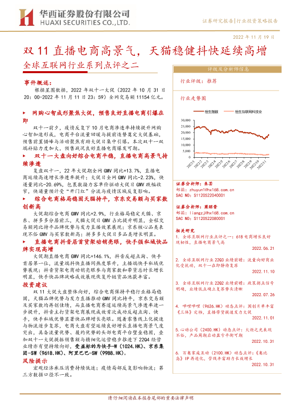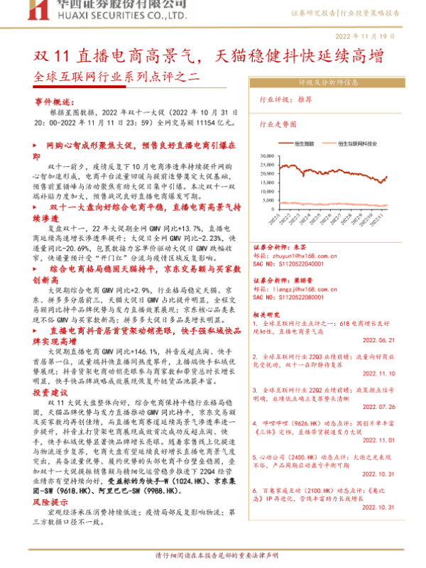 【华西证券】【20221119】全球互联网行业系列点评之二:双11直播电商高景气,天猫稳健抖快延续高增-18页