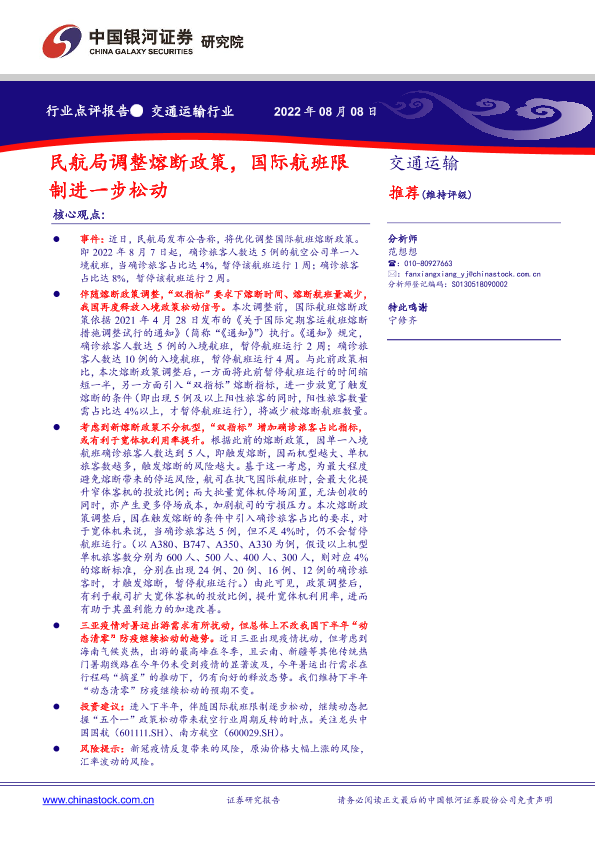 【银河证券】【20220808】民航局调整熔断政策,国际航班限制进一步松动-2页