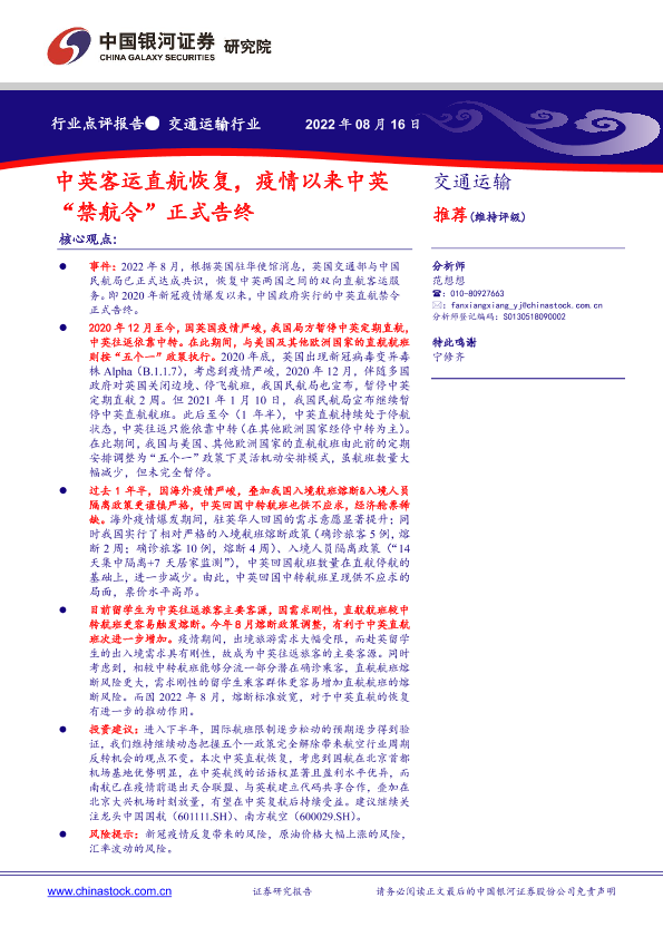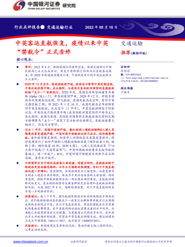【银河证券】【20220816】中英客运直航恢复,疫情以来中英“禁航令”正式告终-2页