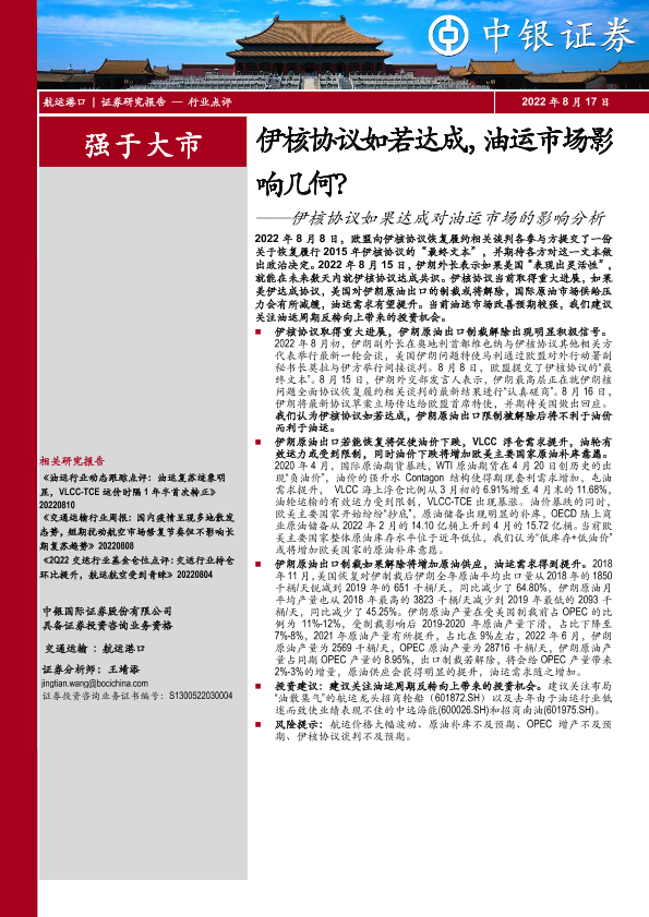 【中银证券】【20220817】伊核协议如果达成对油运市场的影响分析-4页