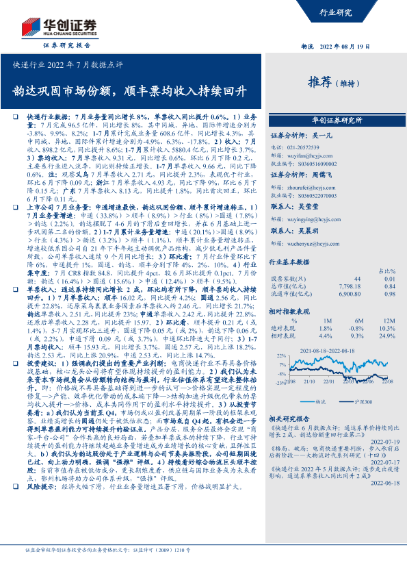 【华创证券】【20220819】快递行业2022年7月数据点评-9页