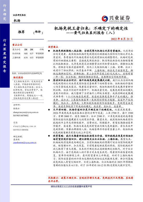 【兴业证券】【20220821】机场免税王者归来:不确定下的确定性-40页