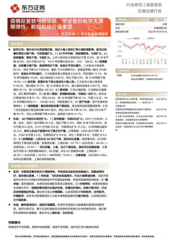 【东方证券】【20220905】22年半年报业绩综述:疫情反复致亏损加剧,坚定看好航空大周期弹性,枢纽机场价值重塑-24页