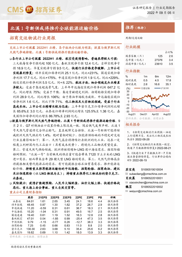 【海通证券】【20220905】招商交运物流行业周报:北溪1号断供或将推升全球能源运输价格-16页