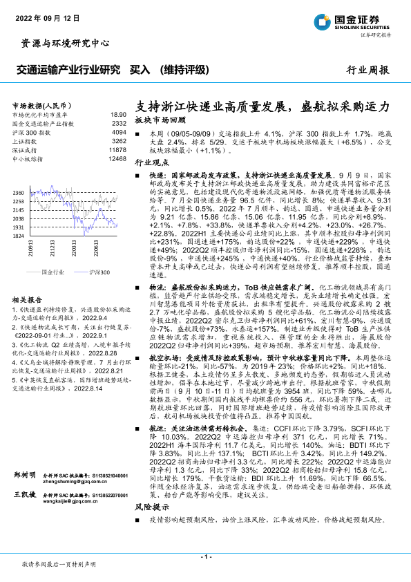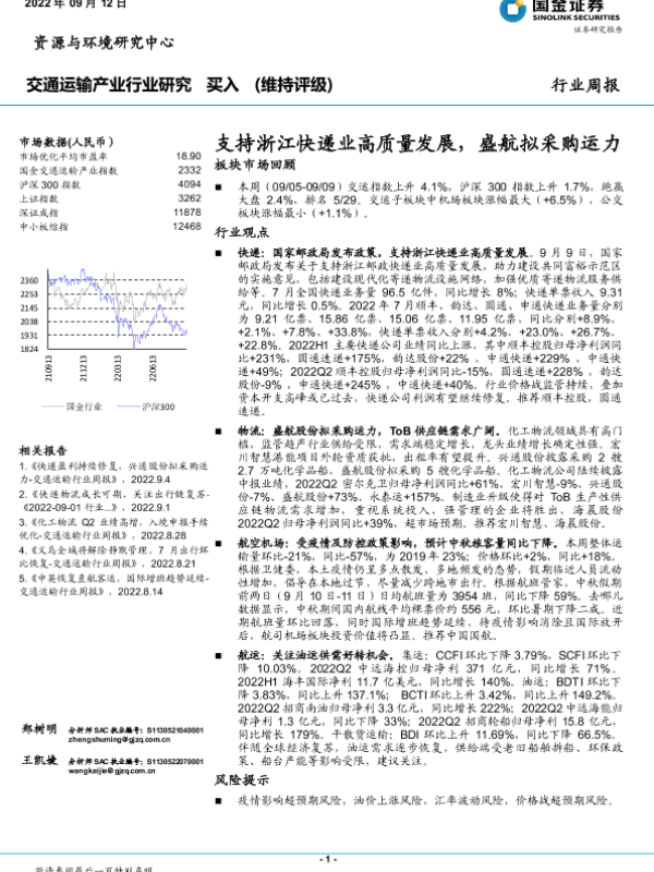 【国金证券】【20220912】支持浙江快递业高质量发展,盛航拟采购运力-15页