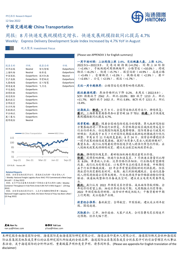 【海通国际】【20220912】8月快递发展规模稳定增长,快递发展规模指数同比提高4.7%-15页