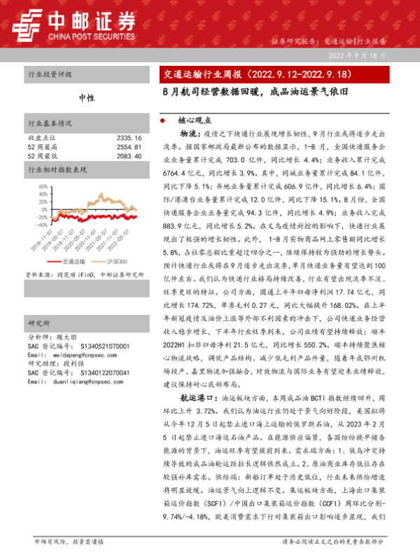 【中邮证券】【20220918】8月航司经营数据回暖,成品油运景气依旧-29页