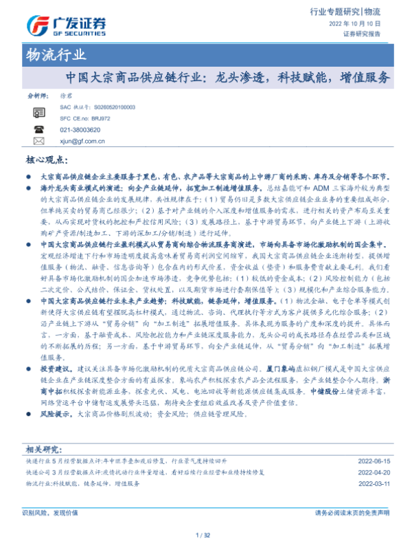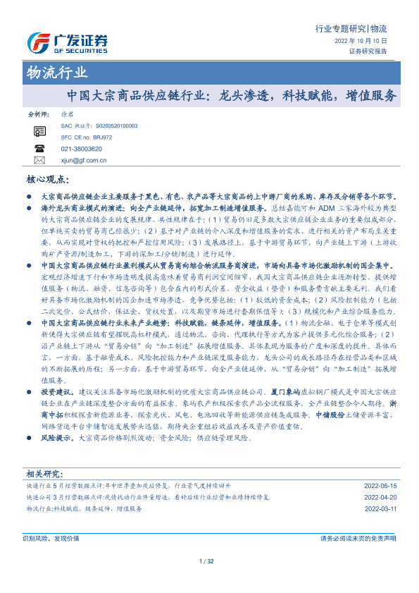 【广发证券】【20221010】中国大宗商品供应链行业:龙头渗透,科技赋能,增值服务-32页