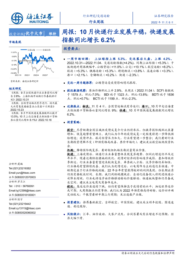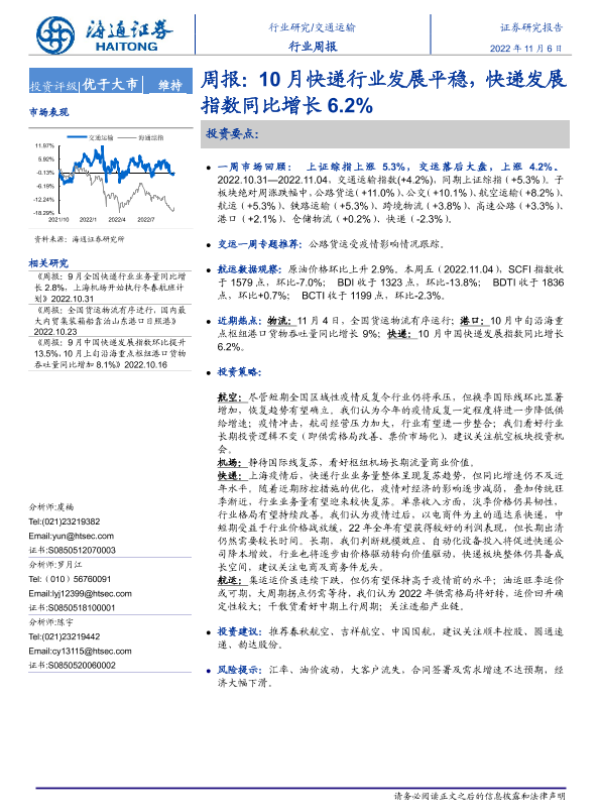 【海通证券】【20221106】10月快递行业发展平稳,快递发展指数同比增长6.2%-11页