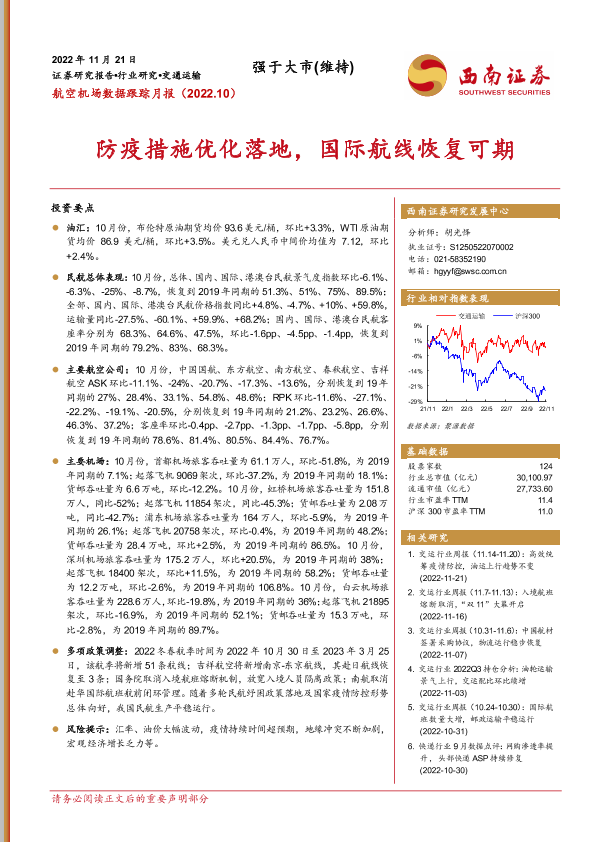 【西南证券】【20221121】航空机场数据跟踪月报-16页