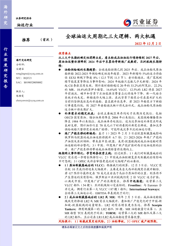 【兴业证券】【20221202】全球油运大周期之三大逻辑、两大机遇-45页