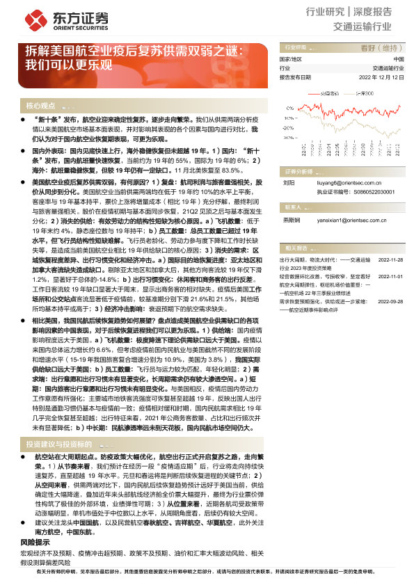 【东方证券】【20221212】拆解美国航空业疫后复苏供需双弱之谜:我们可以更乐观-32页