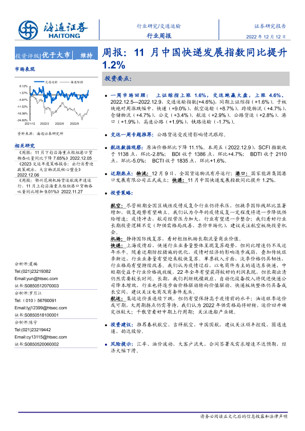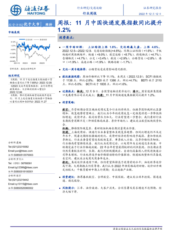 【海通证券】【20221212】11月中国快递发展指数同比提升1.2%-11页