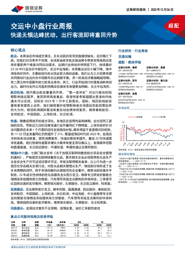 【国信证券】【20221226】交运中小盘行业周报:快递无惧达峰扰动,出行客流即将重回升势-25页