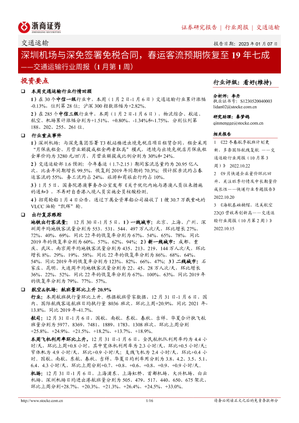 【浙商证券】【20230107】深圳机场与深免签署免税合同,春运客流预期恢复至19年七成-16页