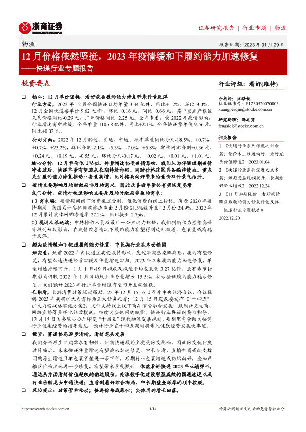 【浙商证券】【20230129】12月价格依然坚挺,2023年疫情缓和下履约能力加速修复-14页