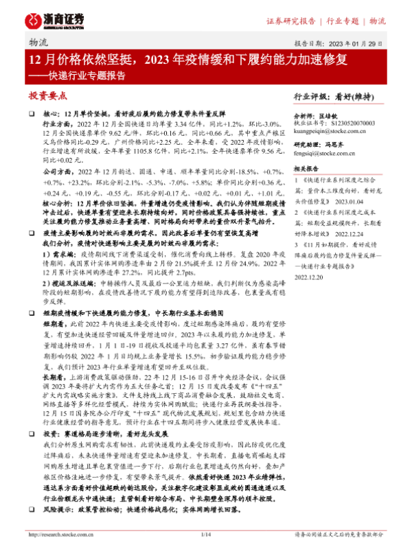 价格分析 履约能力 市场预测 快递行业 疫情影响