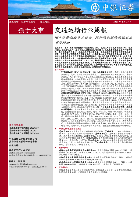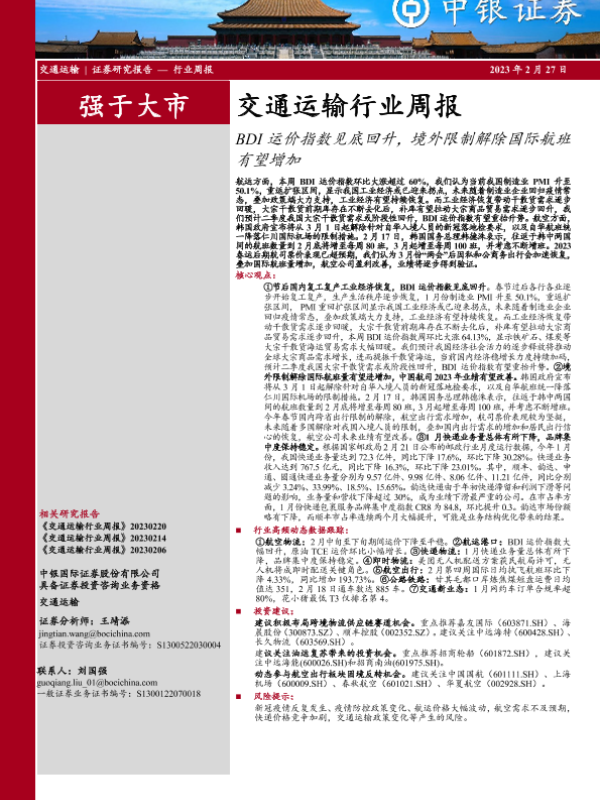 【中银证券】【20230227】交通运输行业周报:BDI运价指数见底回升,境外限制解除国际航班有望增加-29页