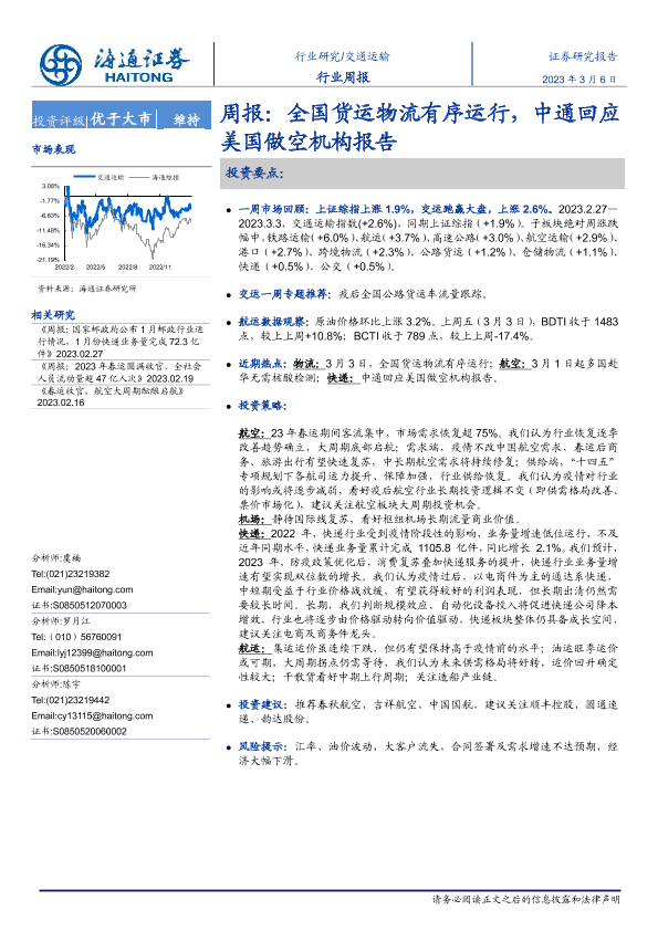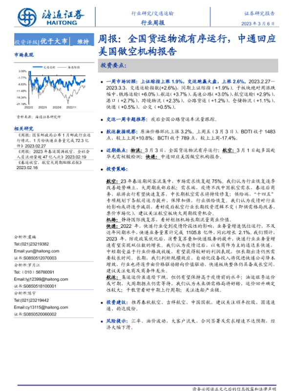 【海通证券】【20230306】交通运输行业周报:全国货运物流有序运行,中通回应美国做空机构报告-10页