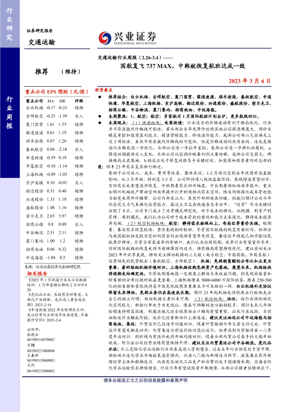 【兴业证券】【20230306】交通运输行业周报:国航复飞737 MAX,中韩就恢复航班达成一致-21页
