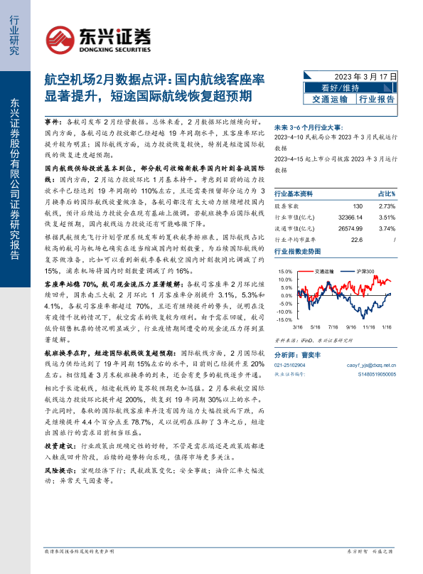 【东兴证券】【20230317】航空机场2月数据点评:国内航线客座率显著提升,短途国际航线恢复超预期-10页