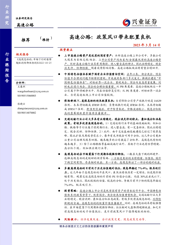 【兴业证券】【20230314】高速公路:政策风口带来配置良机-10页