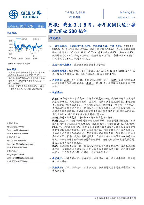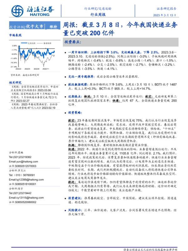 【海通证券】【20230313】交通运输行业周报:截至3月8日,今年我国快递业务量已突破200亿件-10页