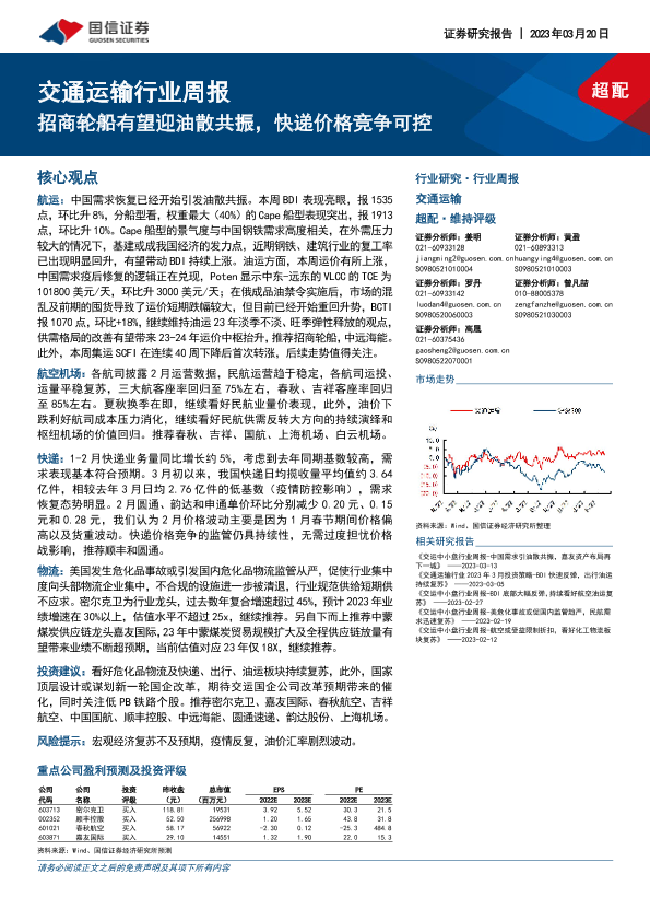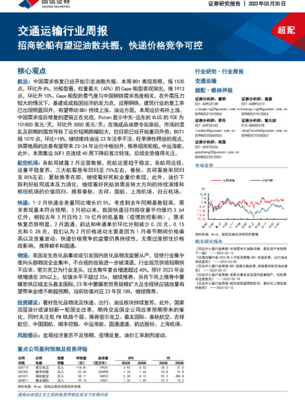 【国信证券】【20230320】交通运输行业周报:招商轮船有望迎油散共振,快递价格竞争可控-18页