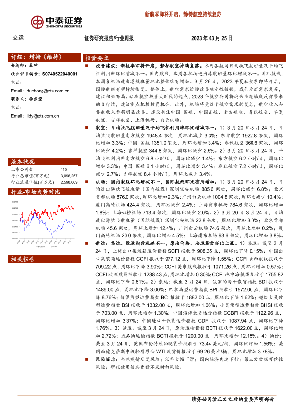 【中泰证券】【20230325】交运行业周报:新航季即将开启,静待航空持续复苏-36页
