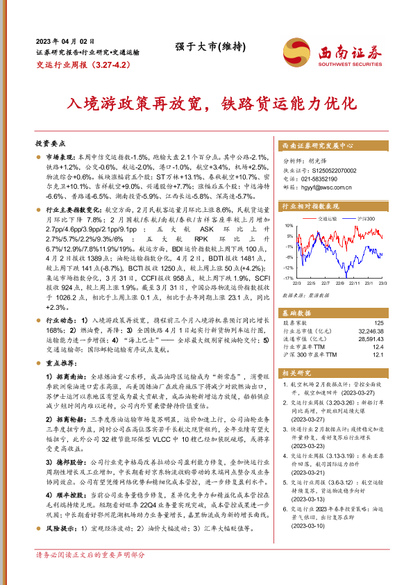 【西南证券】【20230402】交运行业周报:入境游政策再放宽,铁路货运能力优化-20页