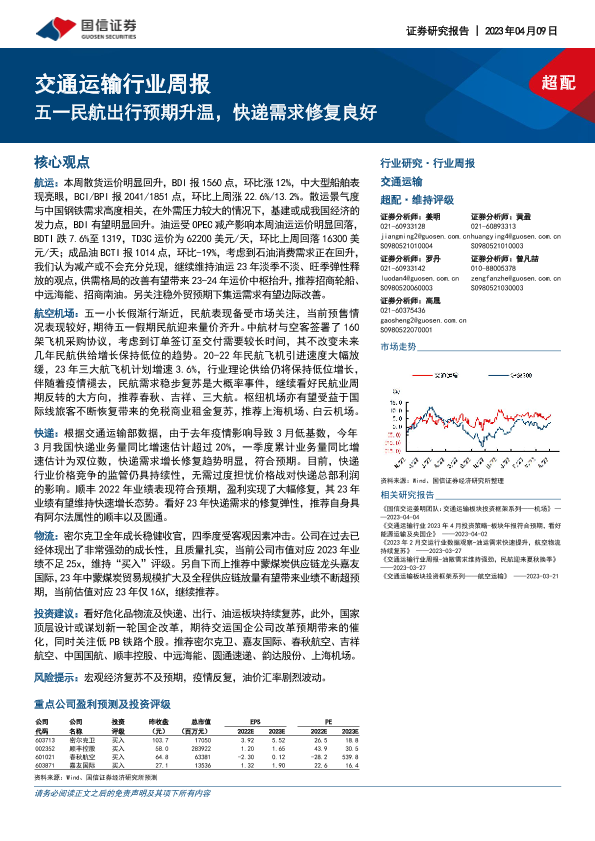 【国信证券】【20230409】交通运输行业周报:五一民航出行预期升温,快递需求修复良好-16页